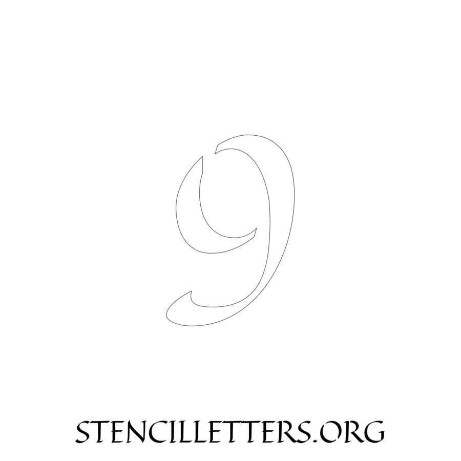 Printable Individual 0-9 Number stencils design 169 Calligraphy in 3 inch numbers high-resolution templates size.