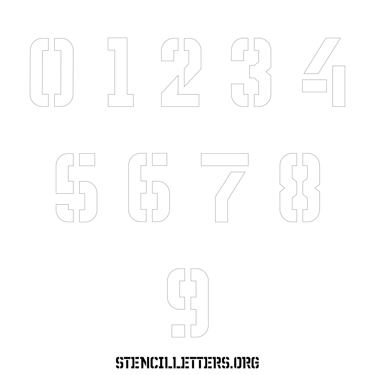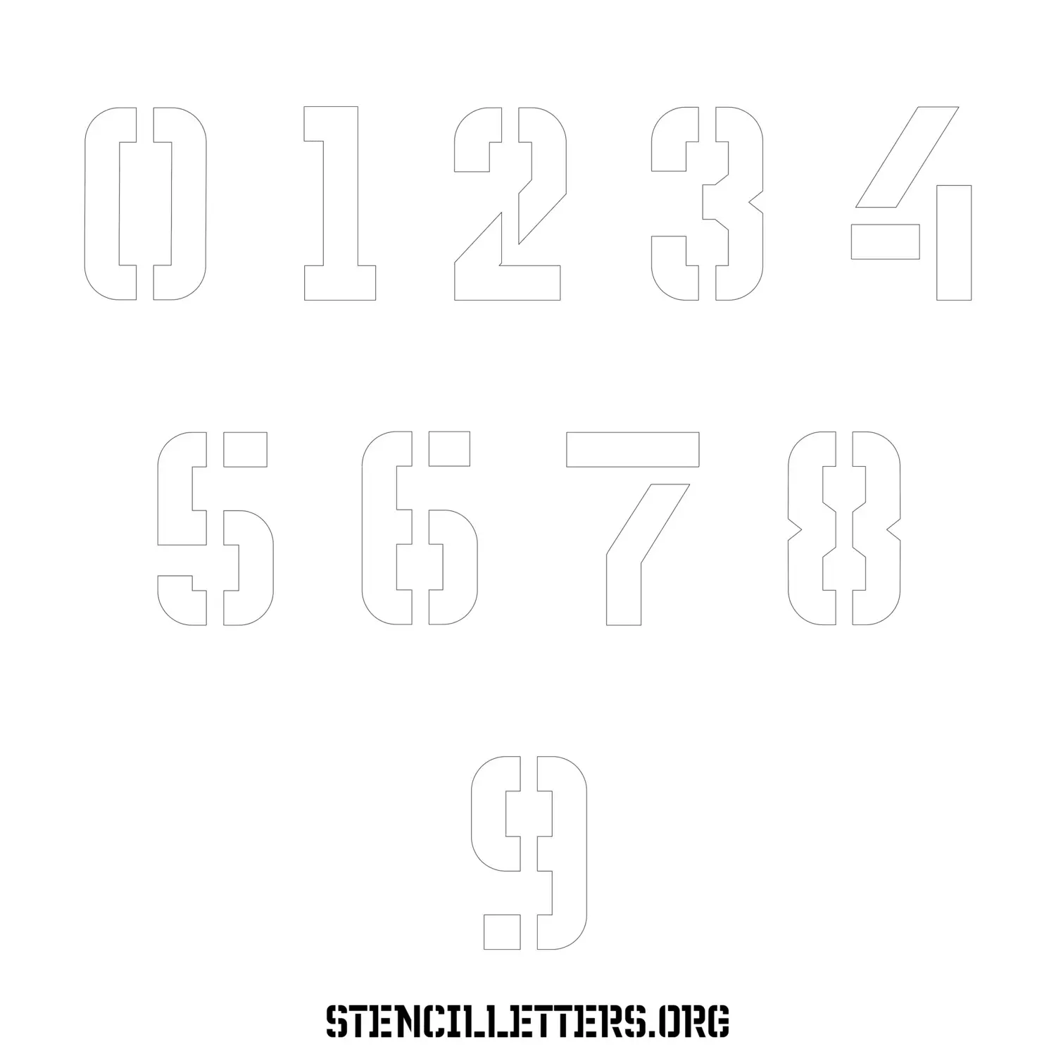 Stencil Design 230 Futuristic. Print these free numbers stencils and make your own DIY templates for your stenciling projects. Available in high resolution printable sizes: 4 Inch, 5 Inch, 6 Inch, 7 Inch, 8 Inch, 9 Inch and 10 Inch.