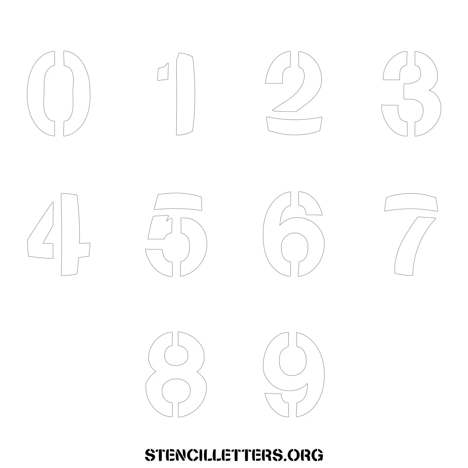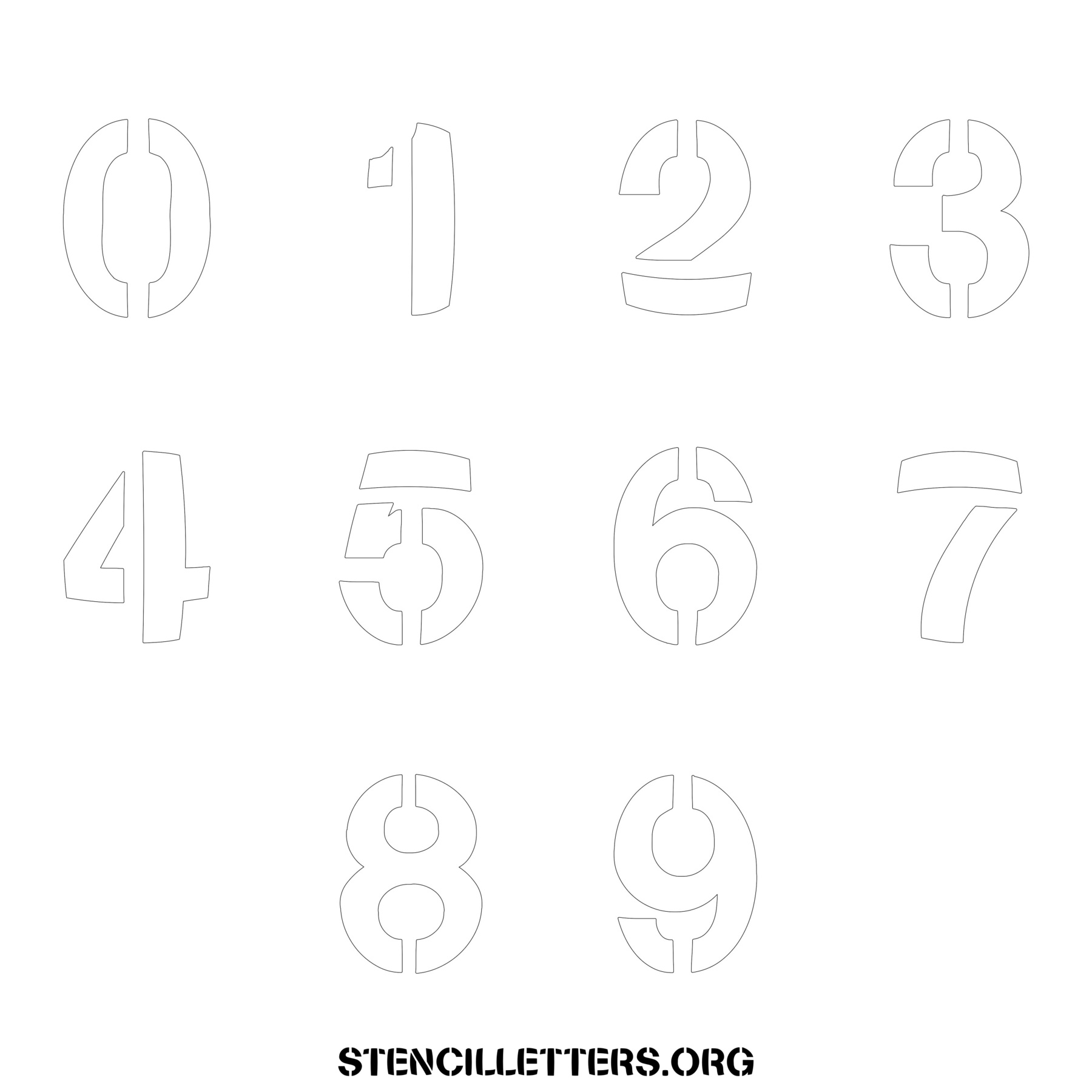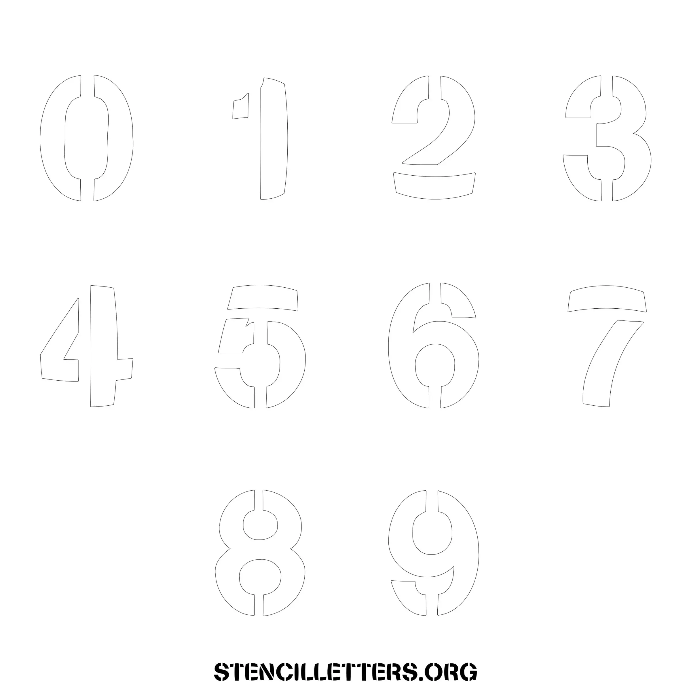 Stencil Design 281 Bold. Print these free numbers stencils and make your own DIY templates for your stenciling projects. Available in high resolution printable sizes: 4 Inch, 5 Inch, 6 Inch, 7 Inch, 8 Inch, 9 Inch and 10 Inch.