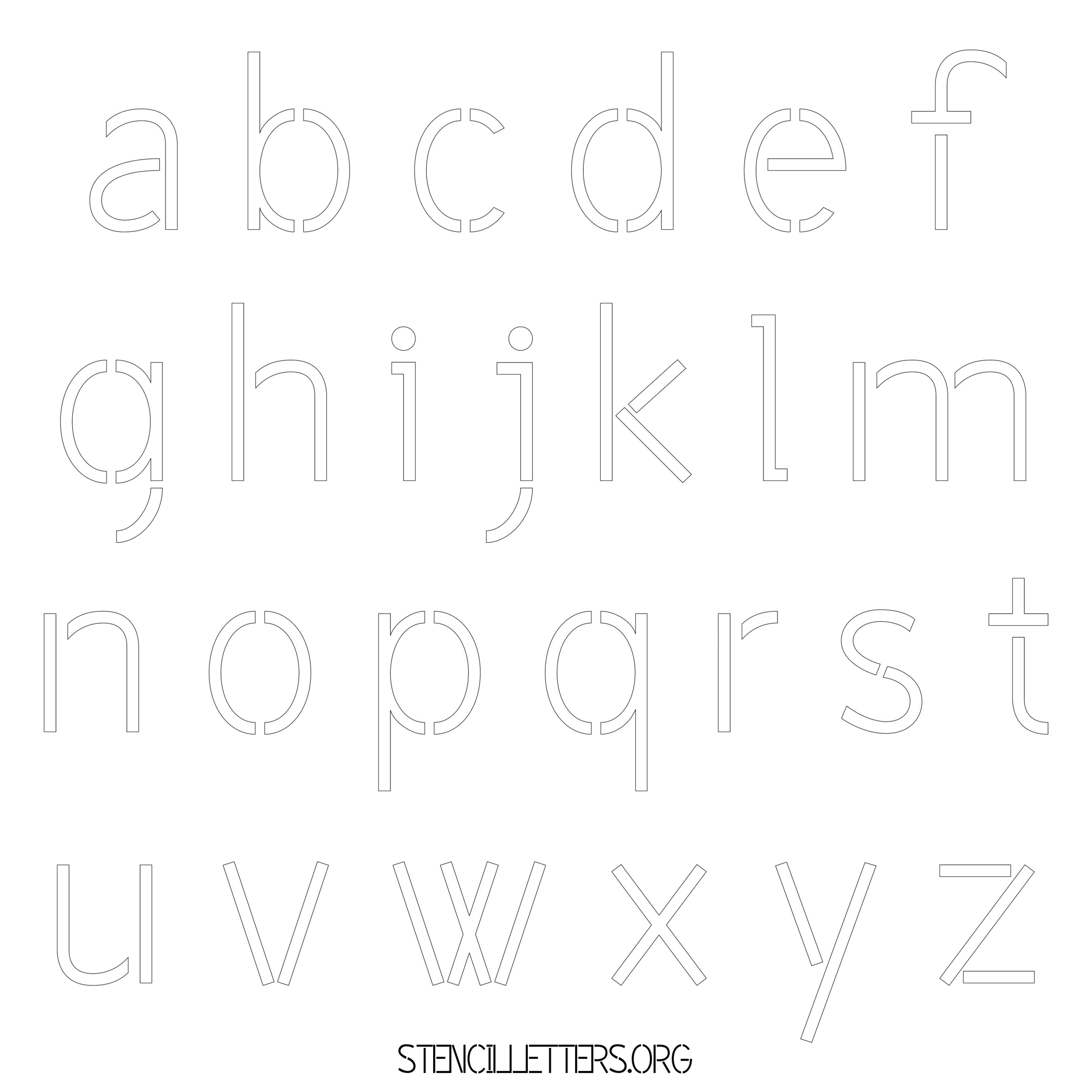 Stencil Design 203 Light Stencil. Print these free lowercase letter stencils and make your own DIY templates for your stenciling projects. Available in high resolution printable sizes: 4 Inch, 5 Inch, 6 Inch, 7 Inch, 8 Inch, 9 Inch and 10 Inch.