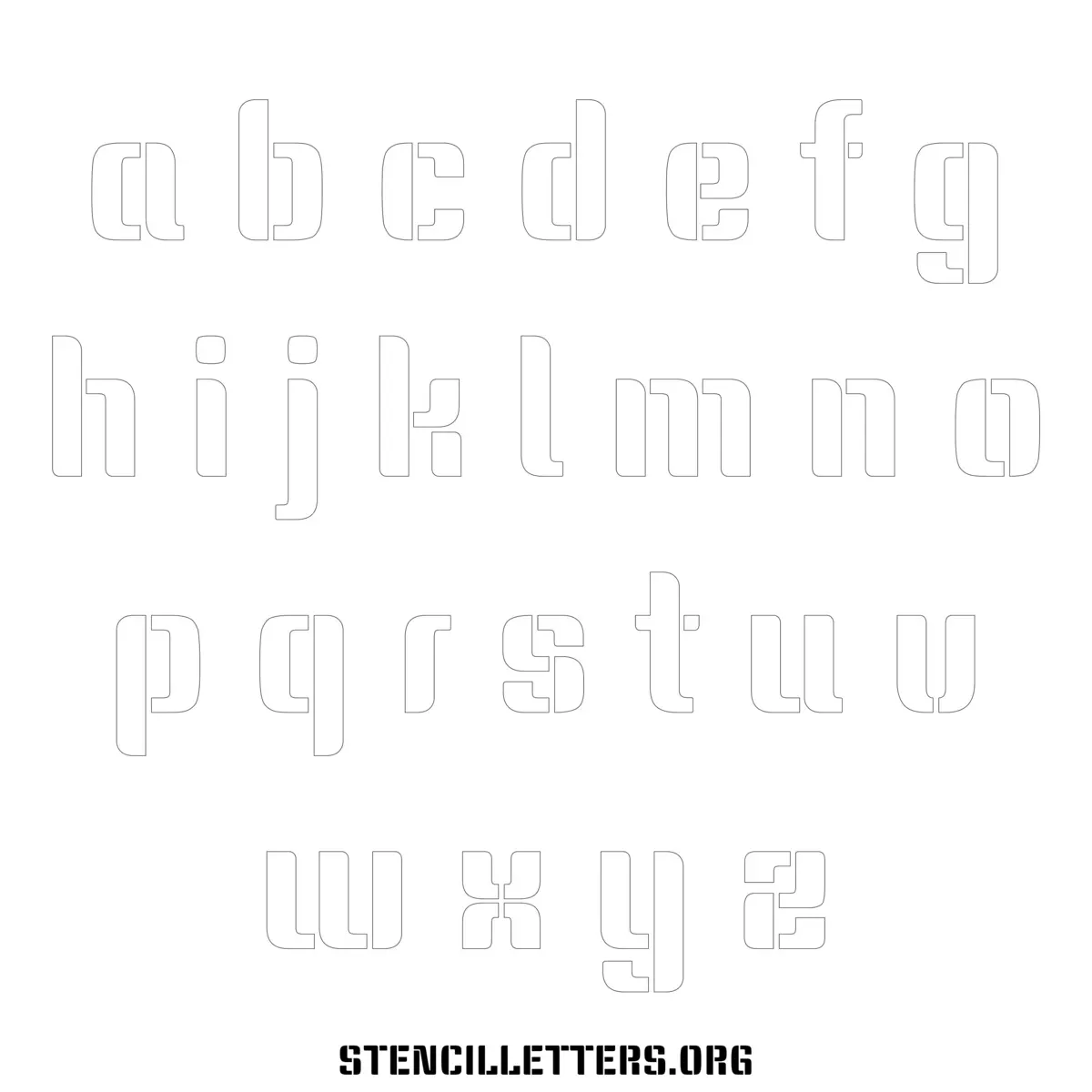 Stencil Design 266 Display Type. Print these free lowercase letter stencils and make your own DIY templates for your stenciling projects. Available in high resolution printable sizes: 4 Inch, 5 Inch, 6 Inch, 7 Inch, 8 Inch, 9 Inch and 10 Inch.