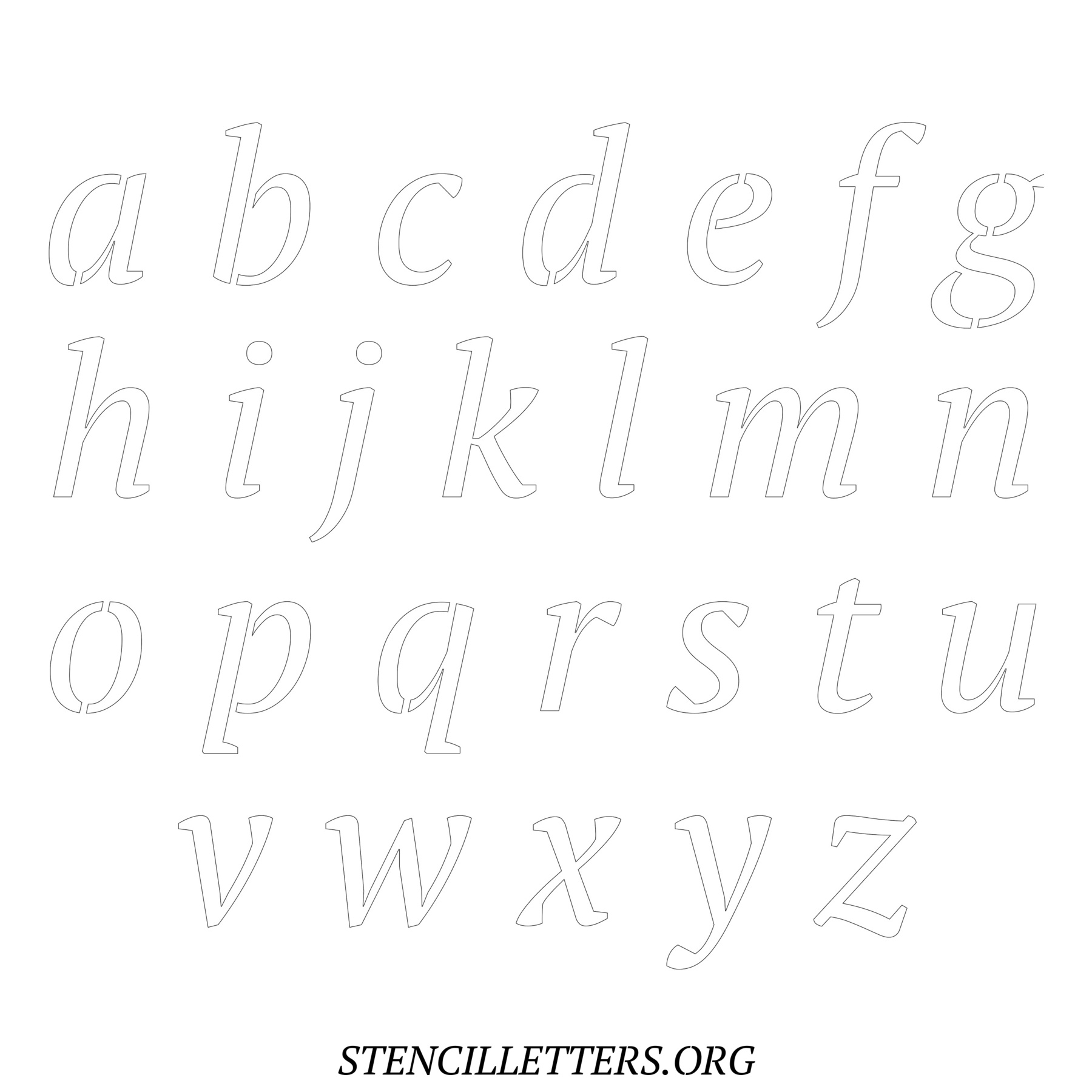 Printable Lowercase Alphabet Stencils - Design 50 Italic