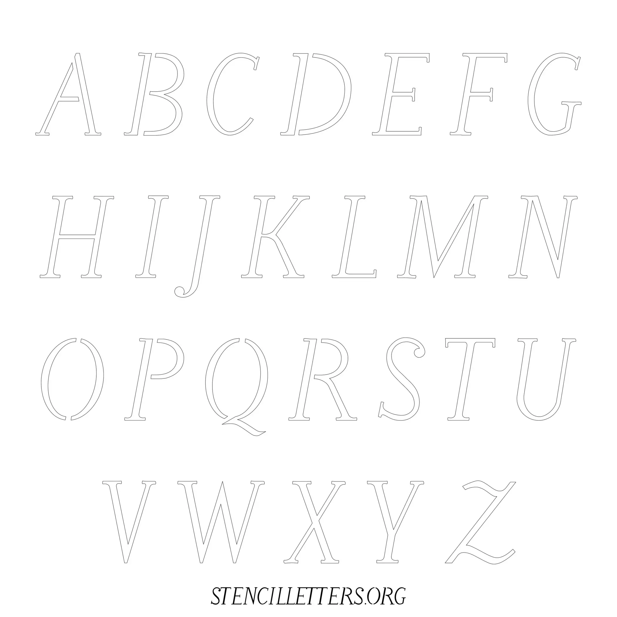 Stencil Design 168 Calligraphy. Print these free uppercase letter stencils and make your own DIY templates for your stenciling projects. Available in high resolution printable sizes: 4 Inch, 5 Inch, 6 Inch, 7 Inch, 8 Inch, 9 Inch and 10 Inch.
