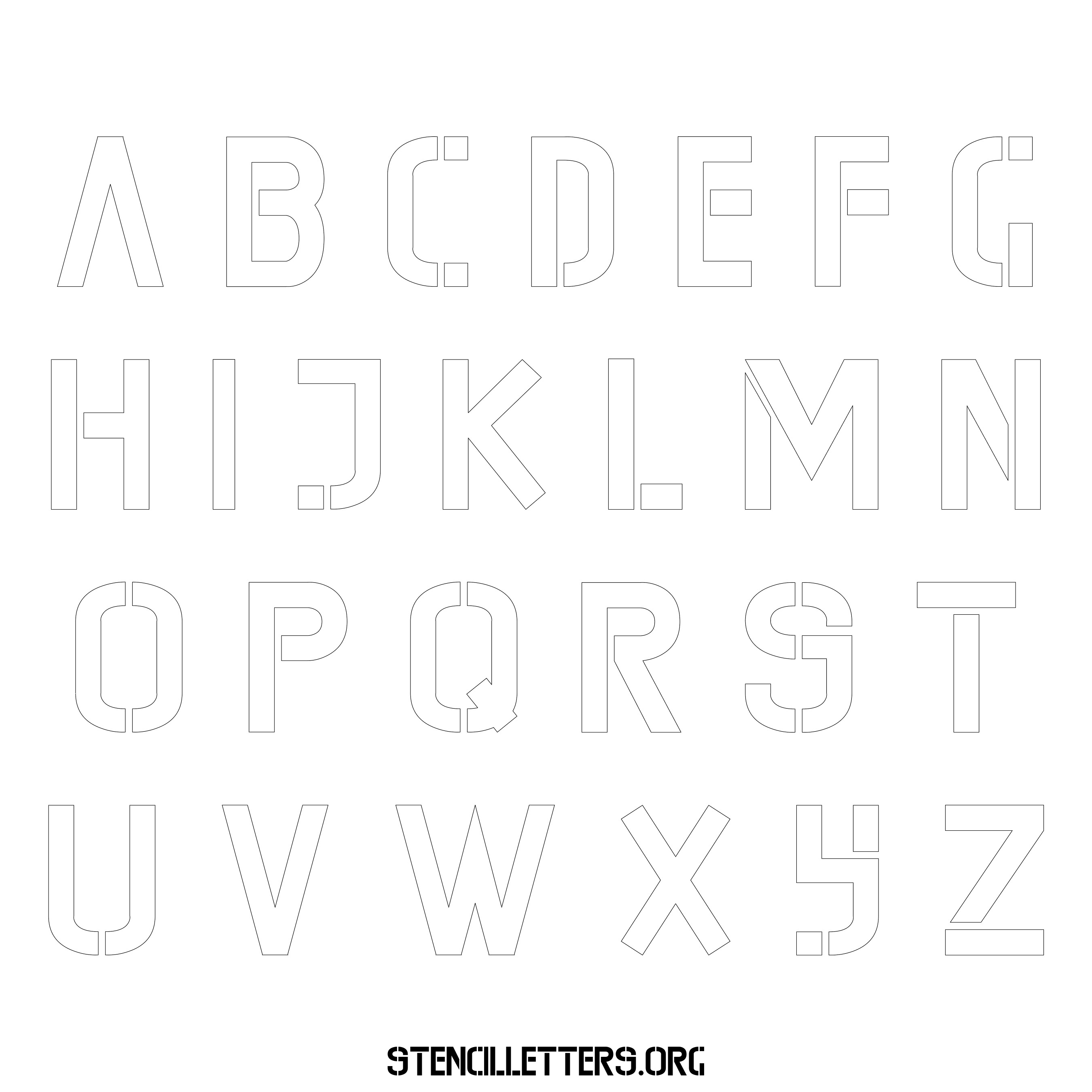 Stencil Design 225 Edgy. Print these free uppercase letter stencils and make your own DIY templates for your stenciling projects. Available in high resolution printable sizes: 4 Inch, 5 Inch, 6 Inch, 7 Inch, 8 Inch, 9 Inch and 10 Inch.