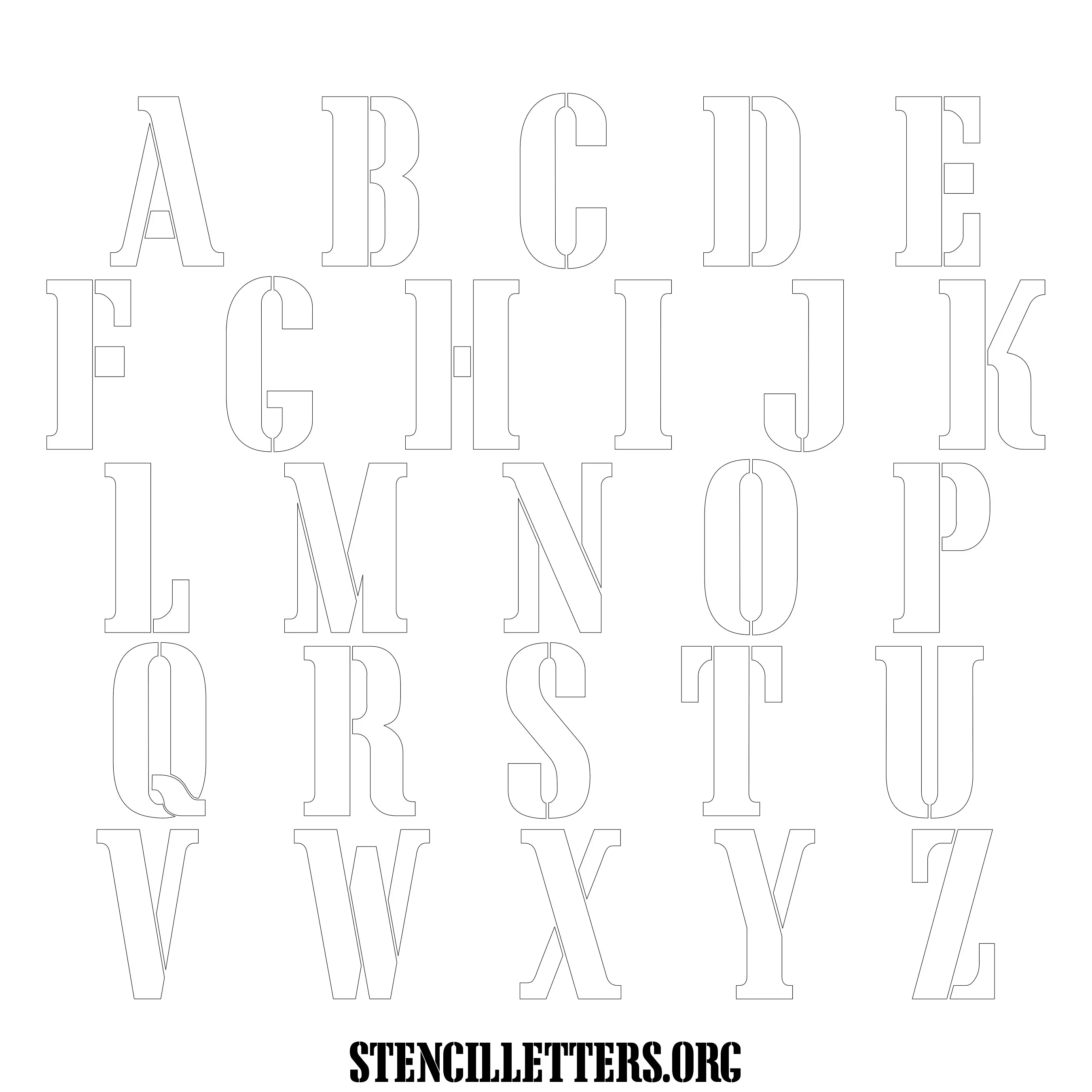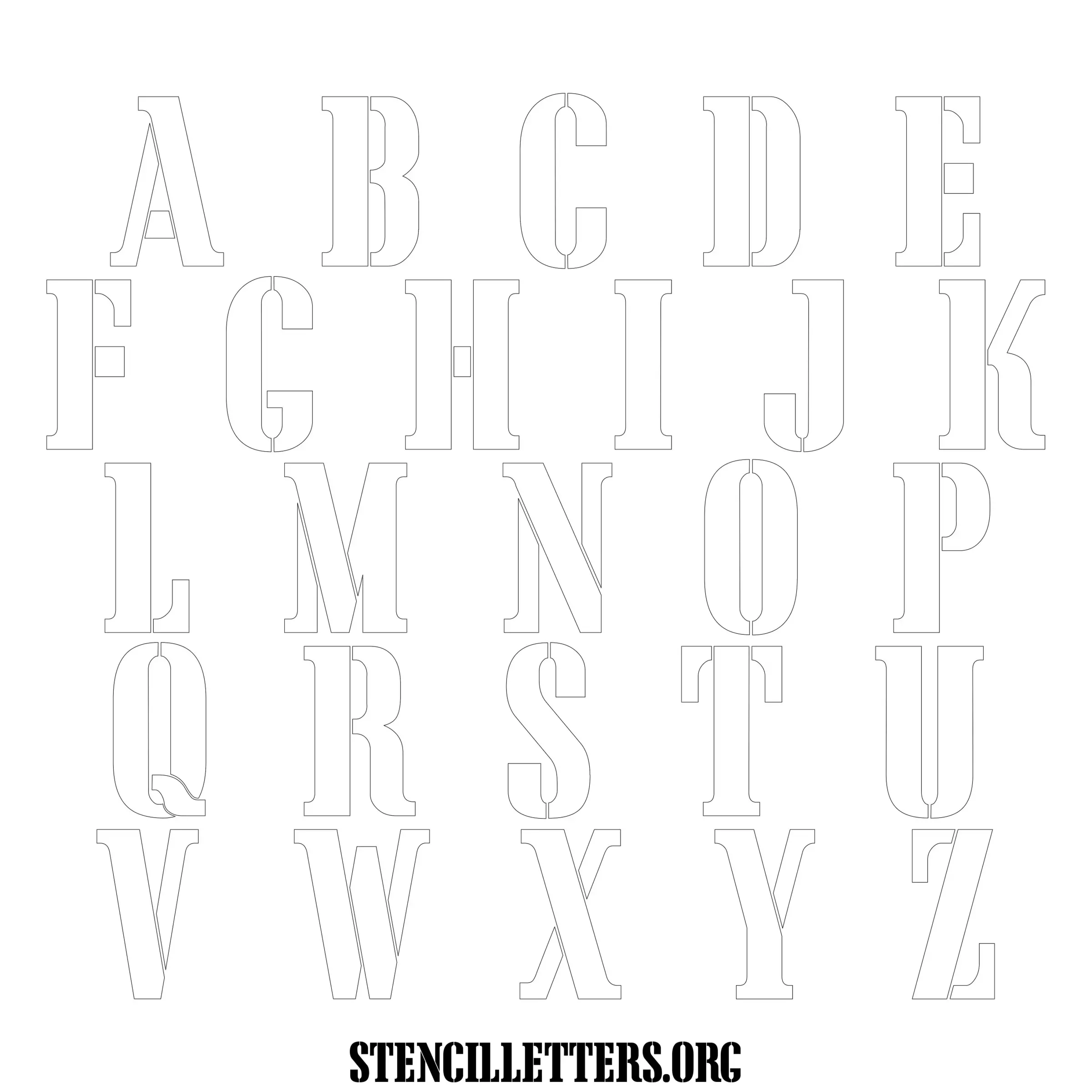 Stencil Design 243 Army. Print these free uppercase letter stencils and make your own DIY templates for your stenciling projects. Available in high resolution printable sizes: 4 Inch, 5 Inch, 6 Inch, 7 Inch, 8 Inch, 9 Inch and 10 Inch.