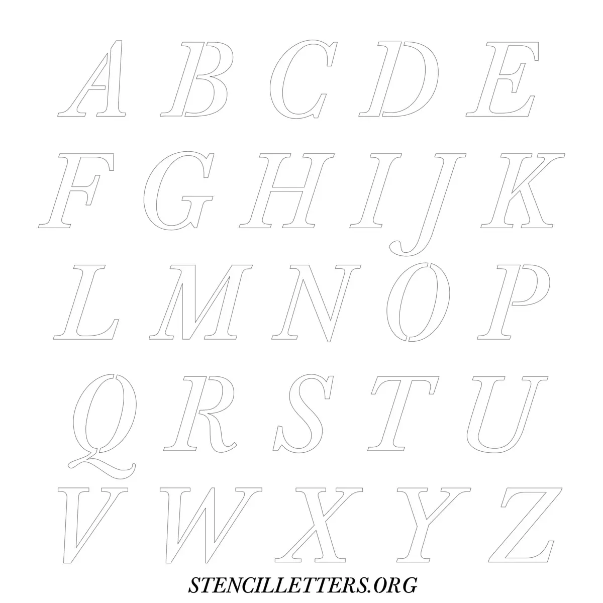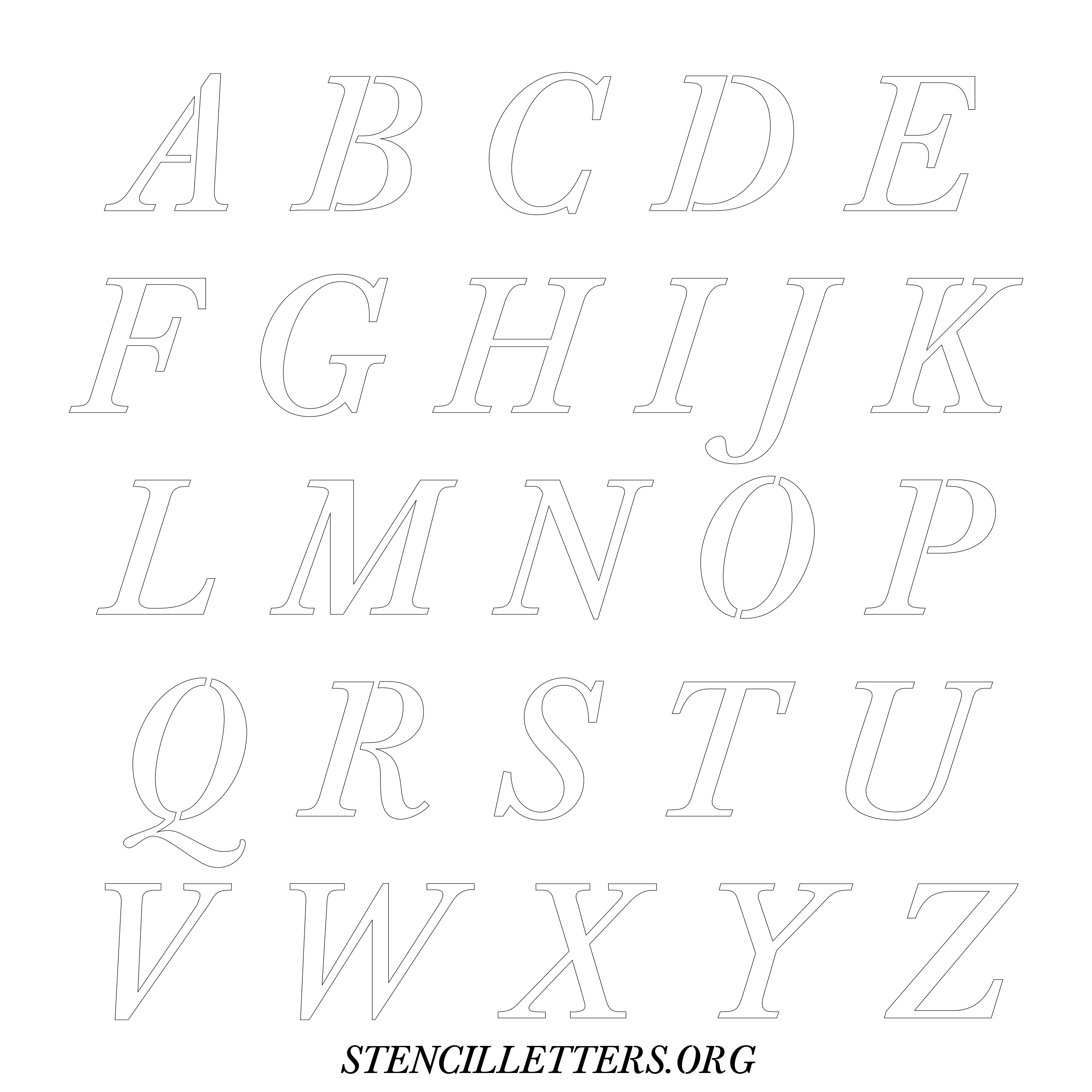 Printable Uppercase Alphabet Stencils - Design 32 Italic