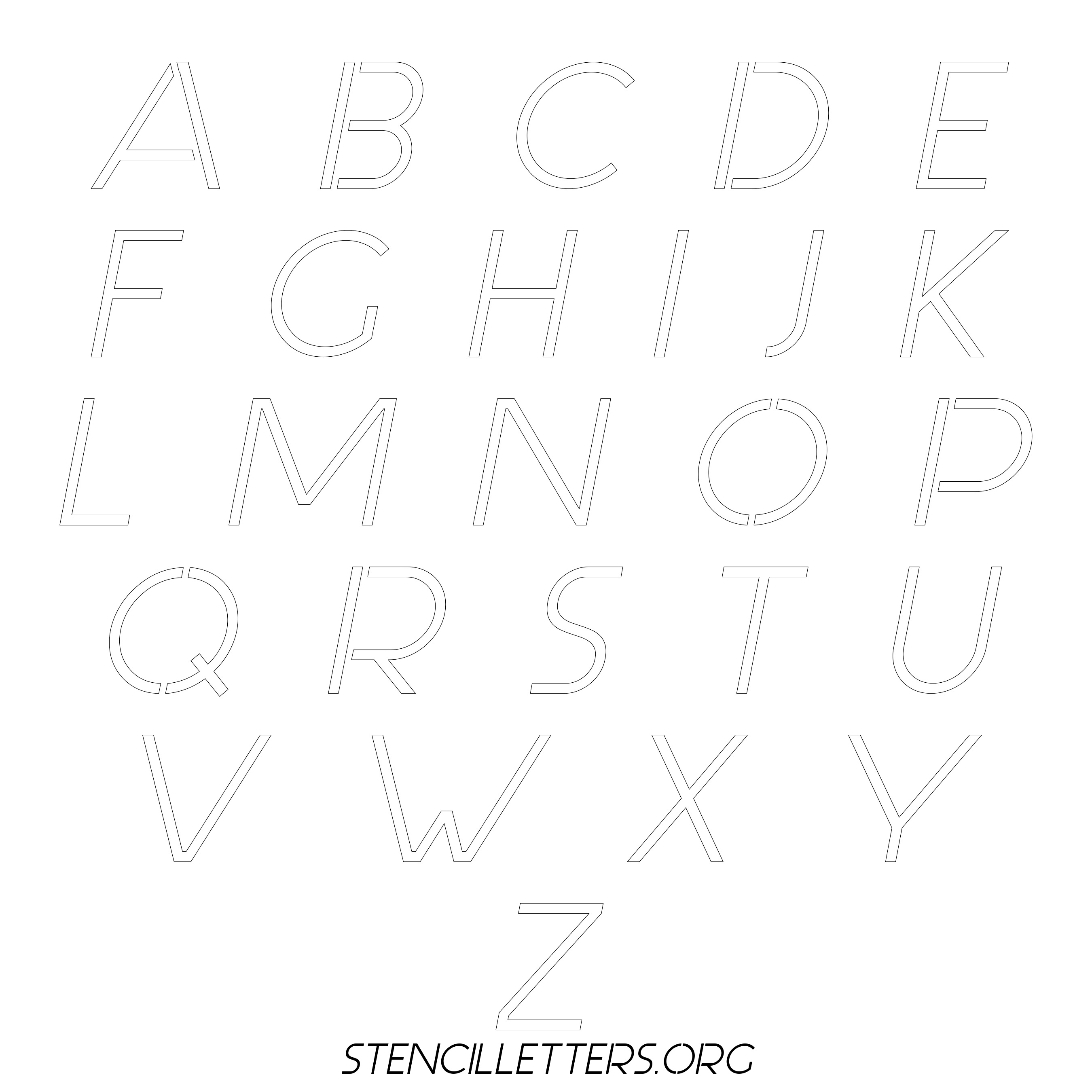 Stencil Design 44 Italic. Print these free uppercase letter stencils and make your own DIY templates for your stenciling projects. Available in high resolution printable sizes: 4 Inch, 5 Inch, 6 Inch, 7 Inch, 8 Inch, 9 Inch and 10 Inch.