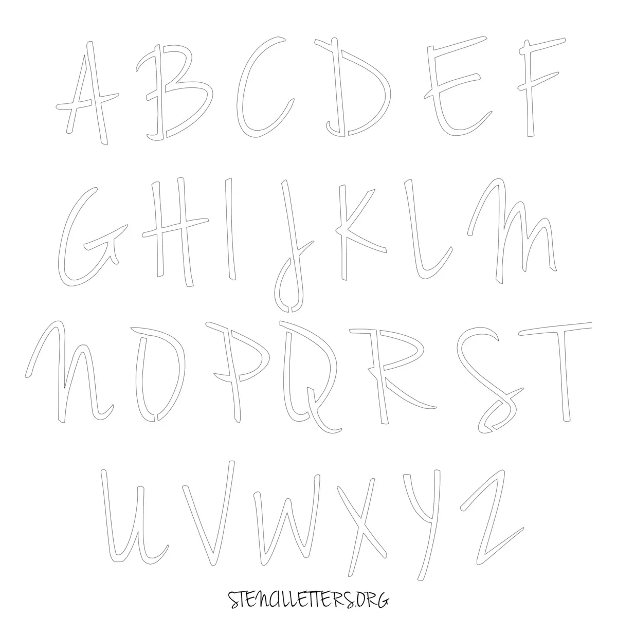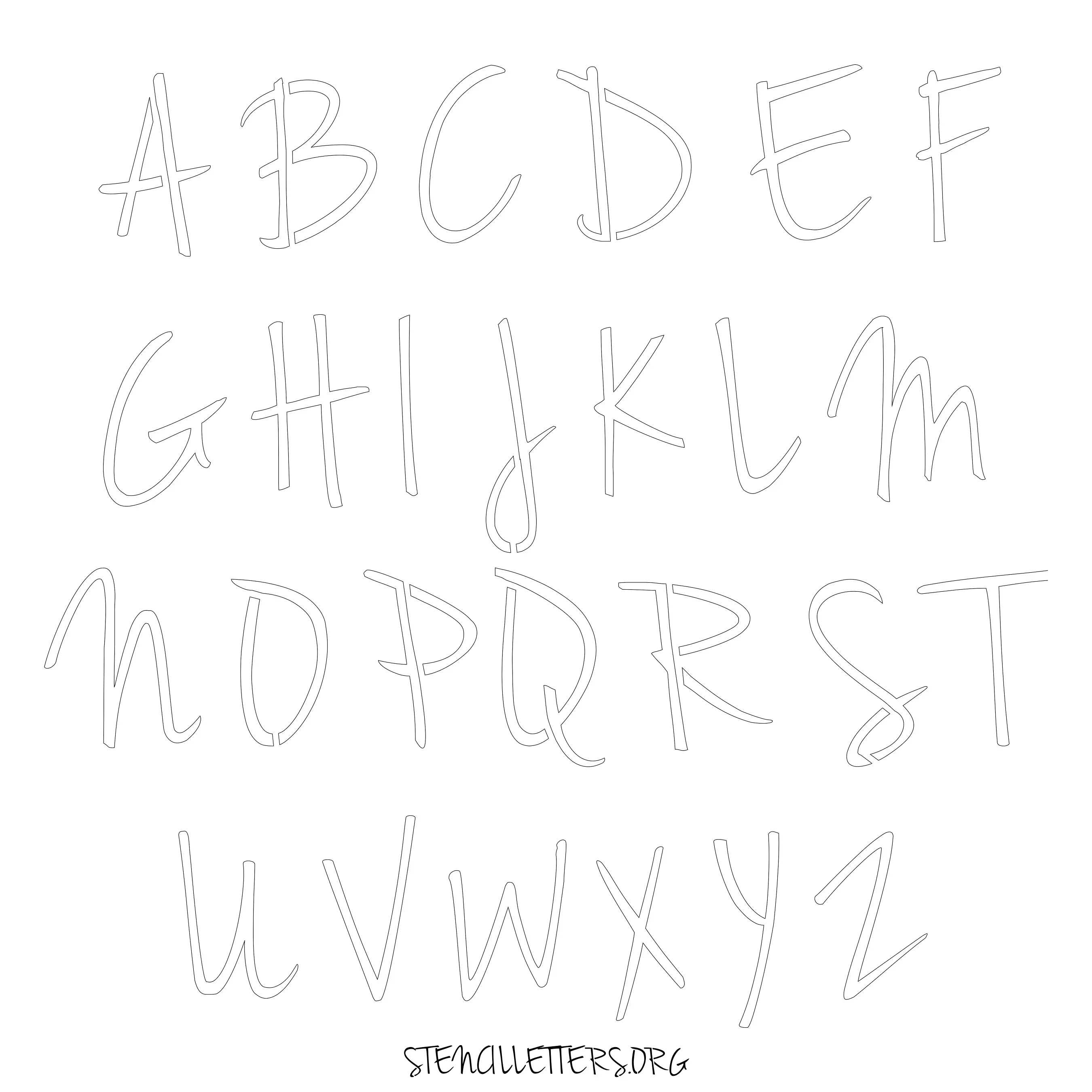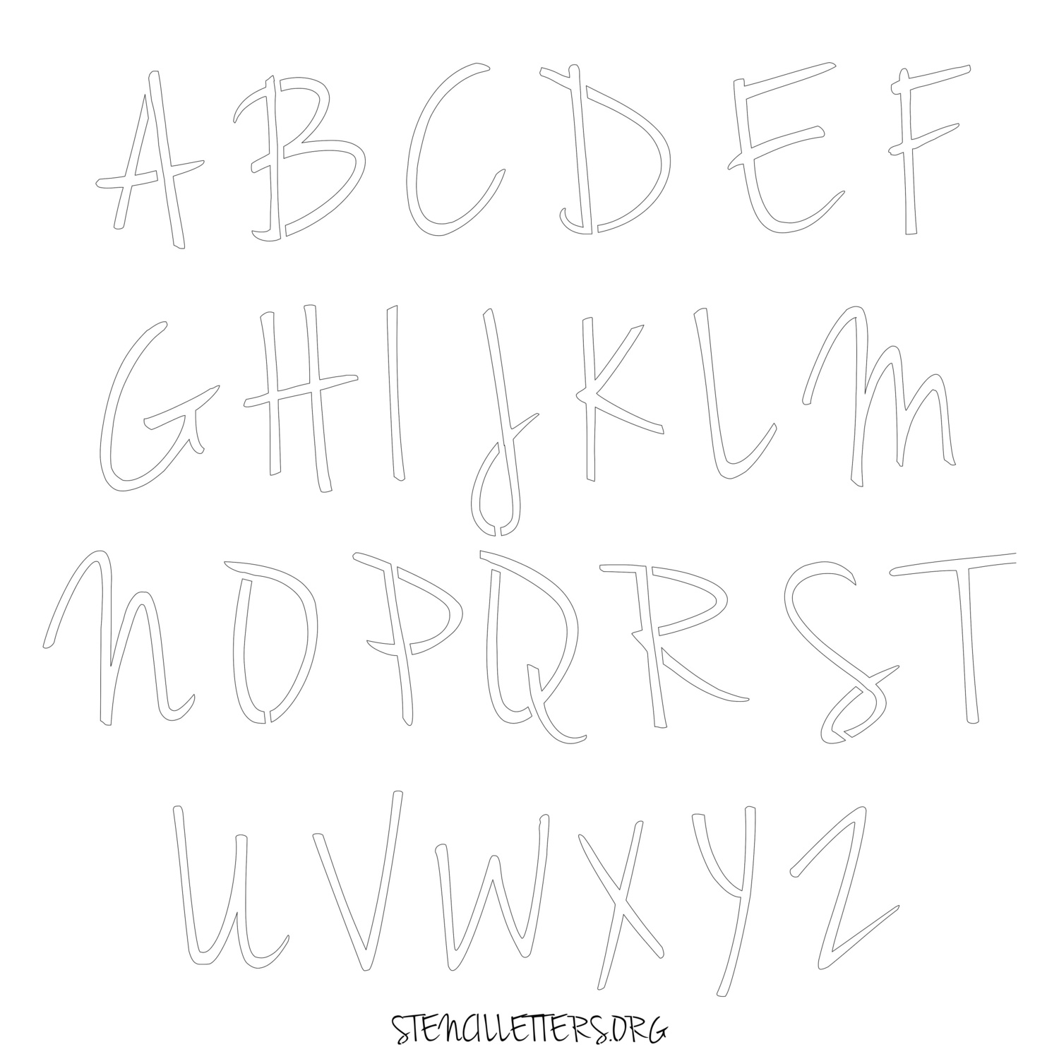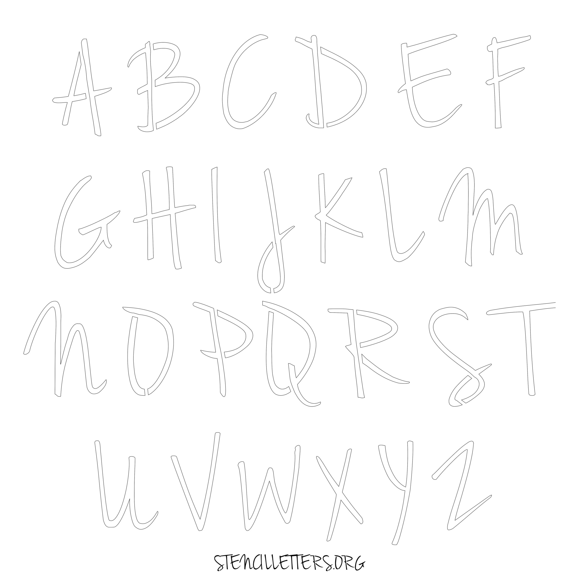 Stencil Design 134 Cursive. Print these free uppercase letter stencils and make your own DIY templates for your stenciling projects. Available in high resolution printable sizes: 4 Inch, 5 Inch, 6 Inch, 7 Inch, 8 Inch, 9 Inch and 10 Inch.