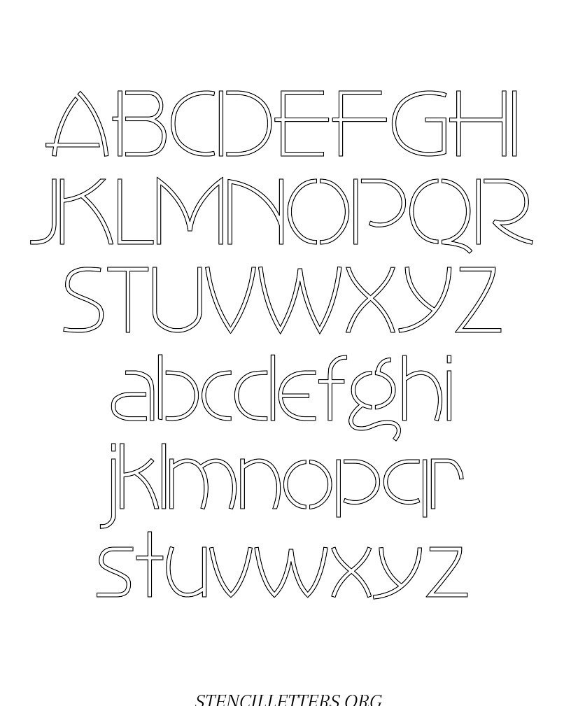 1930's Art Style free printable letter stencils in uppercase and lowercase with outline cutout alphabet letters.